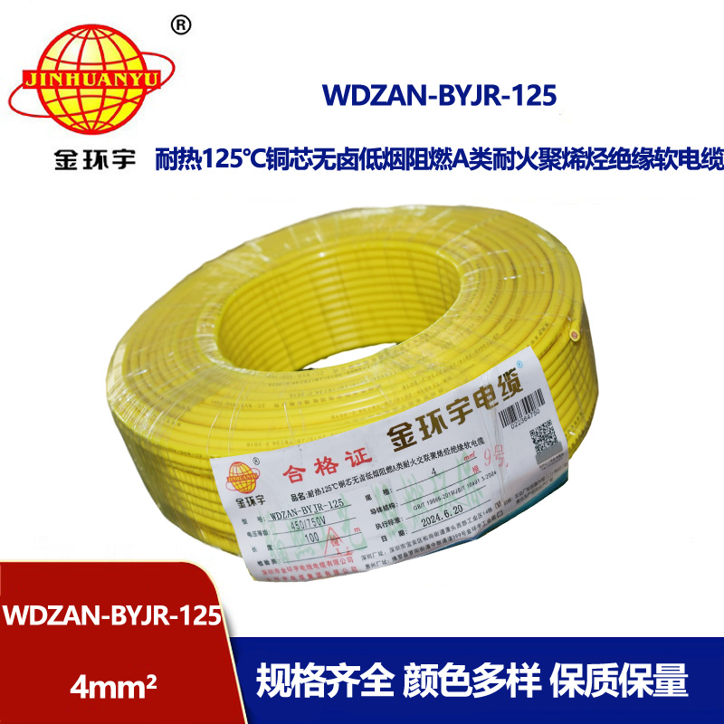 金環宇電線電纜 低煙無鹵A級阻燃耐火電線 4平方銅芯電線WDZAN-BYJR-125