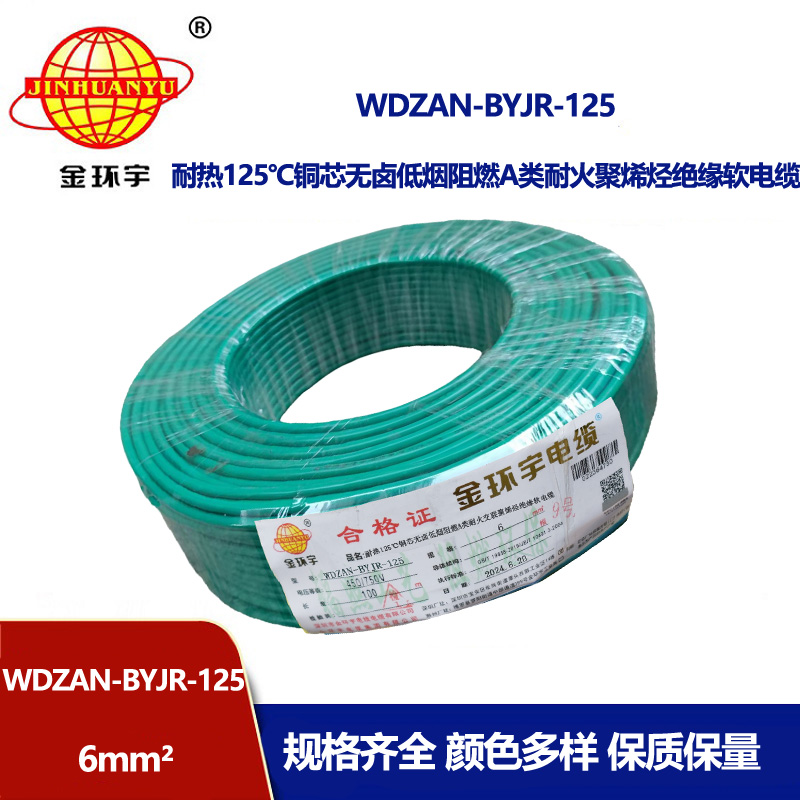 金環宇電線電纜 WDZAN-BYJR-125耐熱低煙無鹵阻燃耐火家裝電線 6平方軟電線